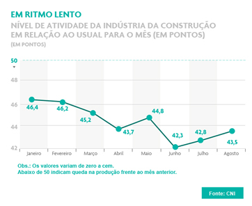Segundo a CNI, a Sondagem Indústria da Construção de agosto